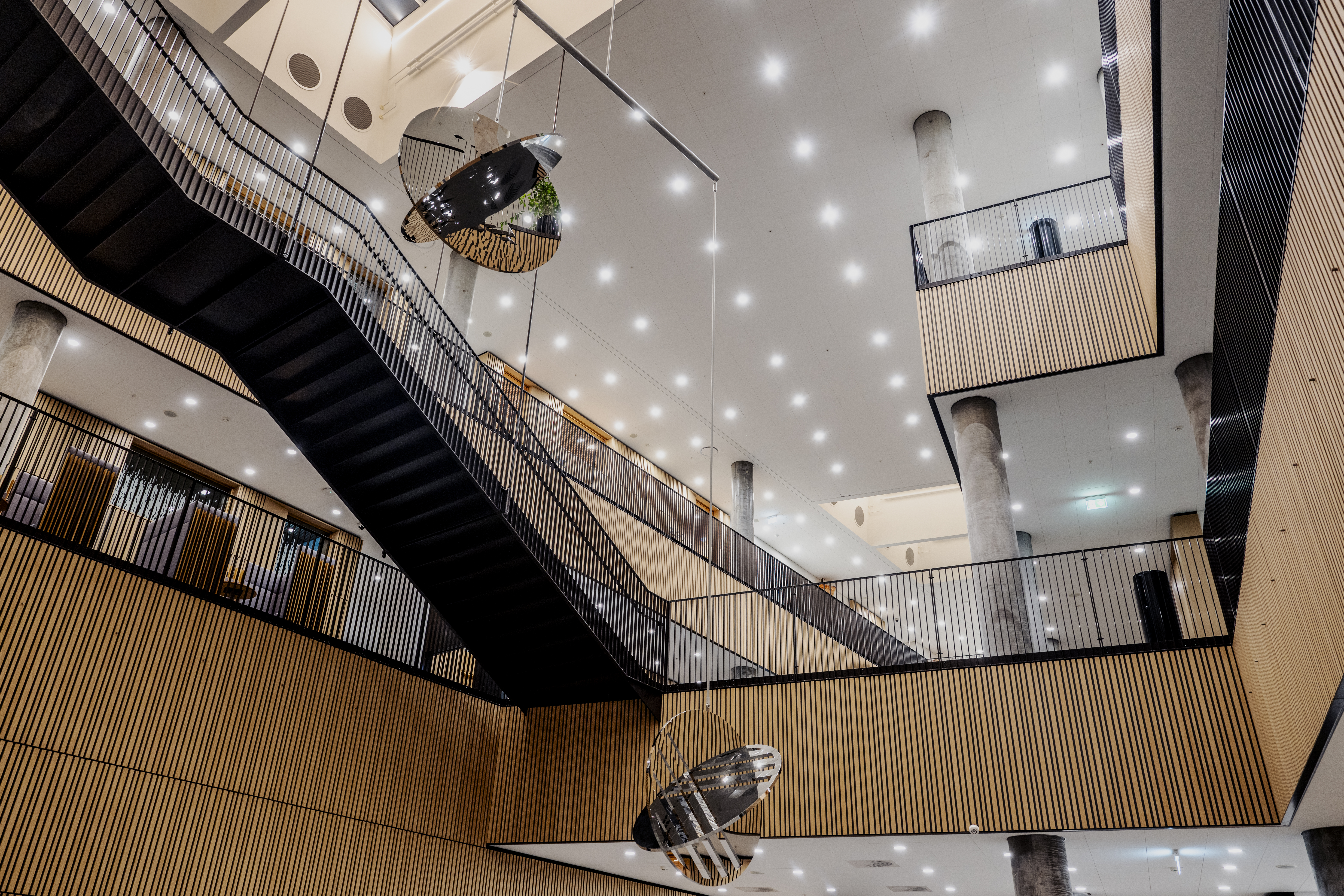 Information om kunsten i dette lokale Kunstner Jeppe Hein Tilblivelsesår 2021 Titel Balance of Now Fond Udført som en del af OPP Placering Atrium Information Læs mere om kunstneren Foto af kunstværket Balance of Now af Jeppe Hein. Foto: Linda Johansen Sidst opdateret: 21. januar 2026